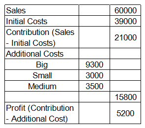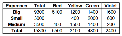 Each of the Big, Small and Medium cost is categorized by the manager into Red, Yellow, Green and Violet costs. Breakdown of the additional costs under these headings is shown in the table below: