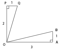 The figure below shows two right angled triangles ∆OAB and ∆OQP with right angles at vertex A and P, respectively, having the common vertex O, The lengths of some of the sides are indicated in the figure. (Note that the figure is not drawn to scale.) AB and OP are parallel.